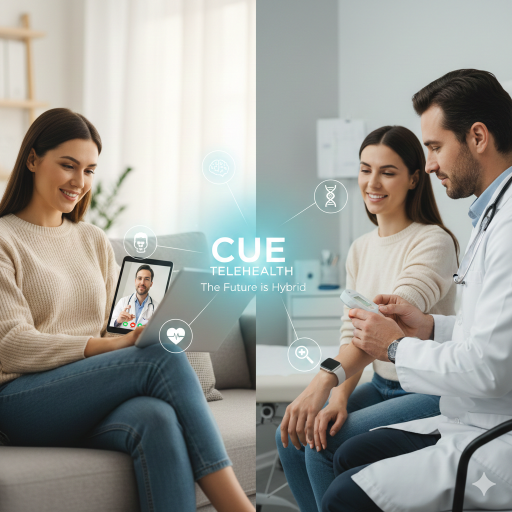Cue Telehealth delivers flexible, comprehensive, and personalized health evaluations right to your front door, virtually or in person.