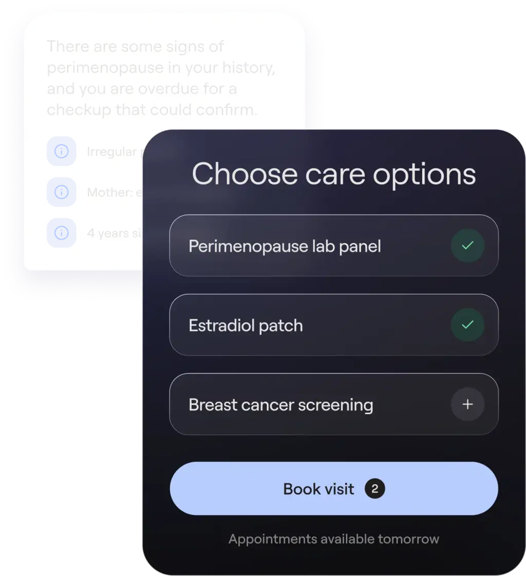 The most important thing you can do for your health is just to take the first step. Ask General AI, and get insights based on your health history. Then choose what matters to you and book your doctor’s visit.