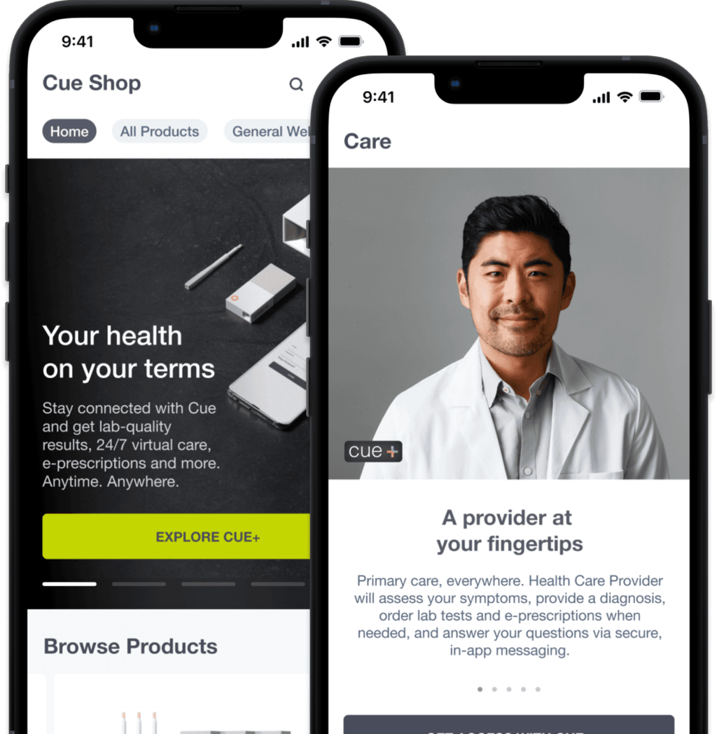 Cue’s flagship molecular tests and mobile app were developed over more than a decade to be reliable, accurate, and easy to use at home, in clinics, and in professional settings.